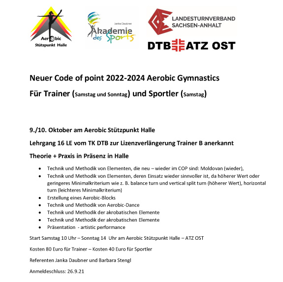 Alle Lehrgänge im Landesturnverband Sachsen-Anhalt 2021